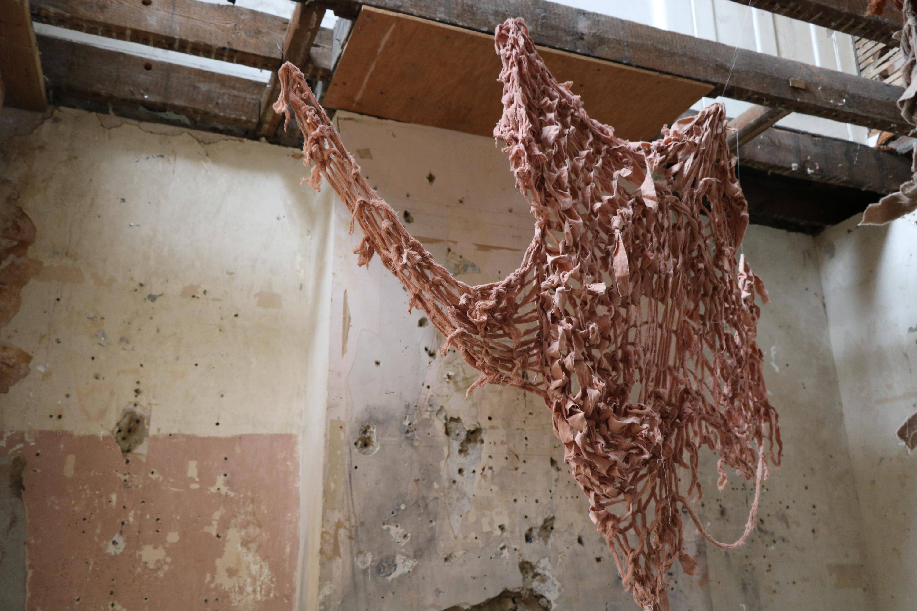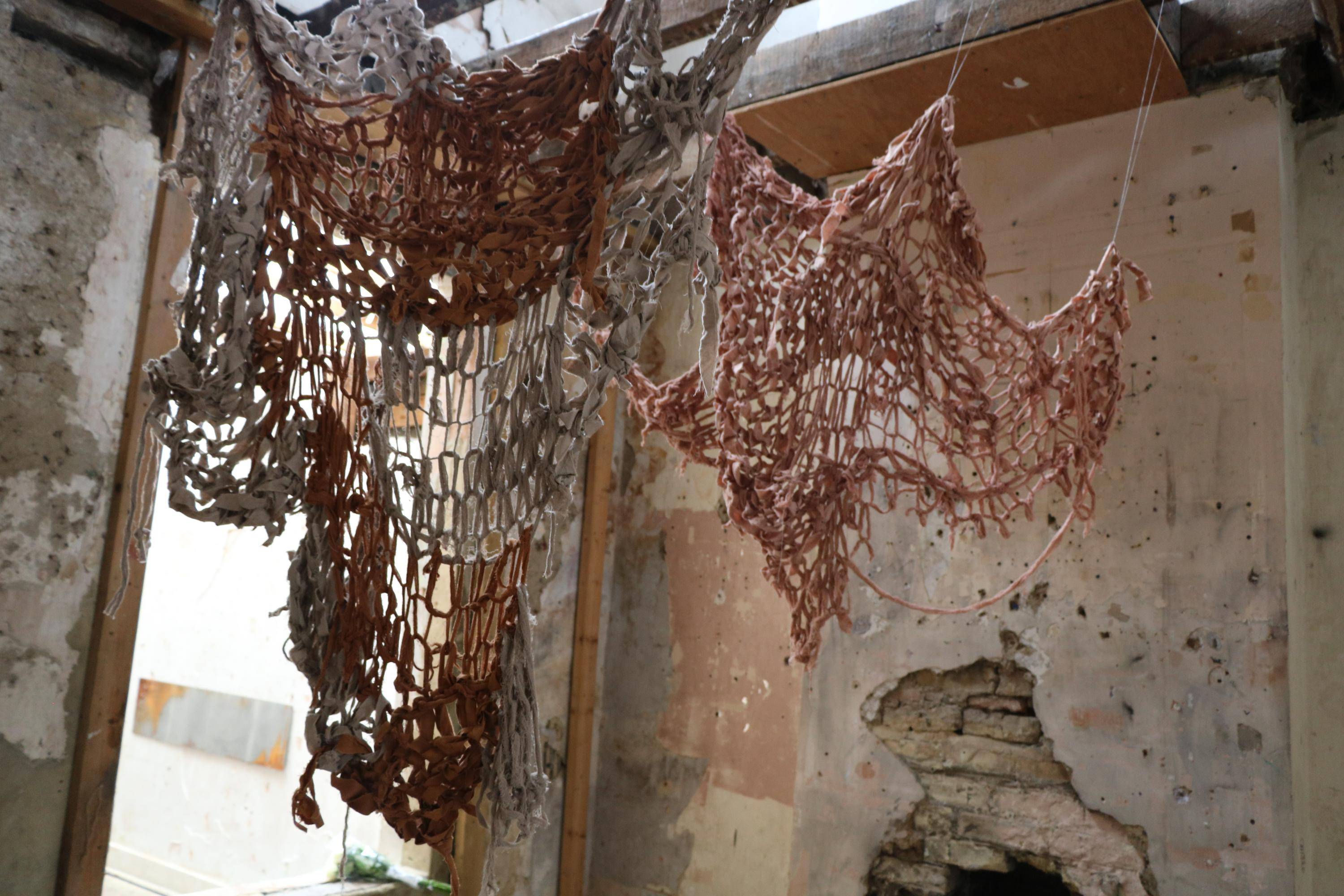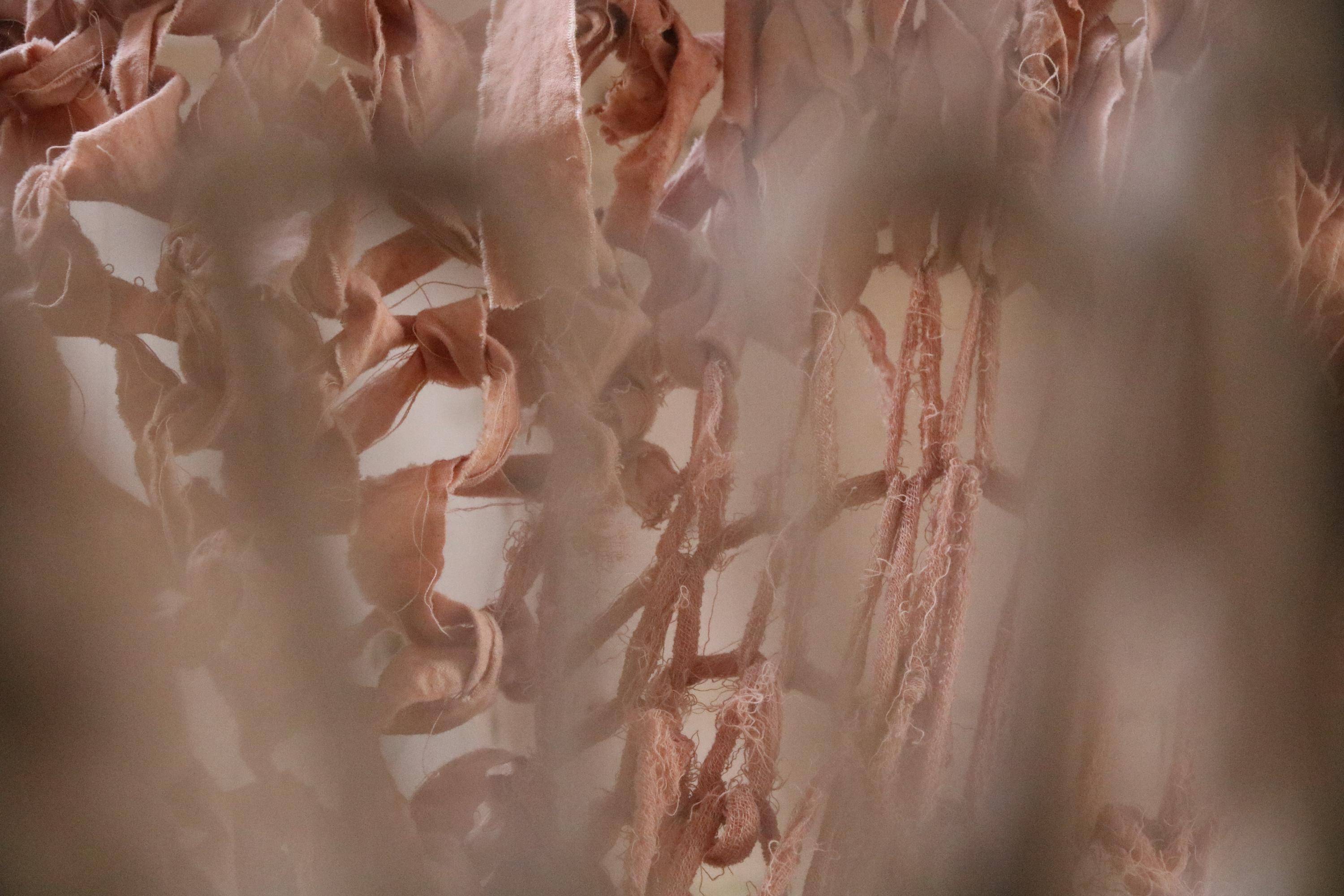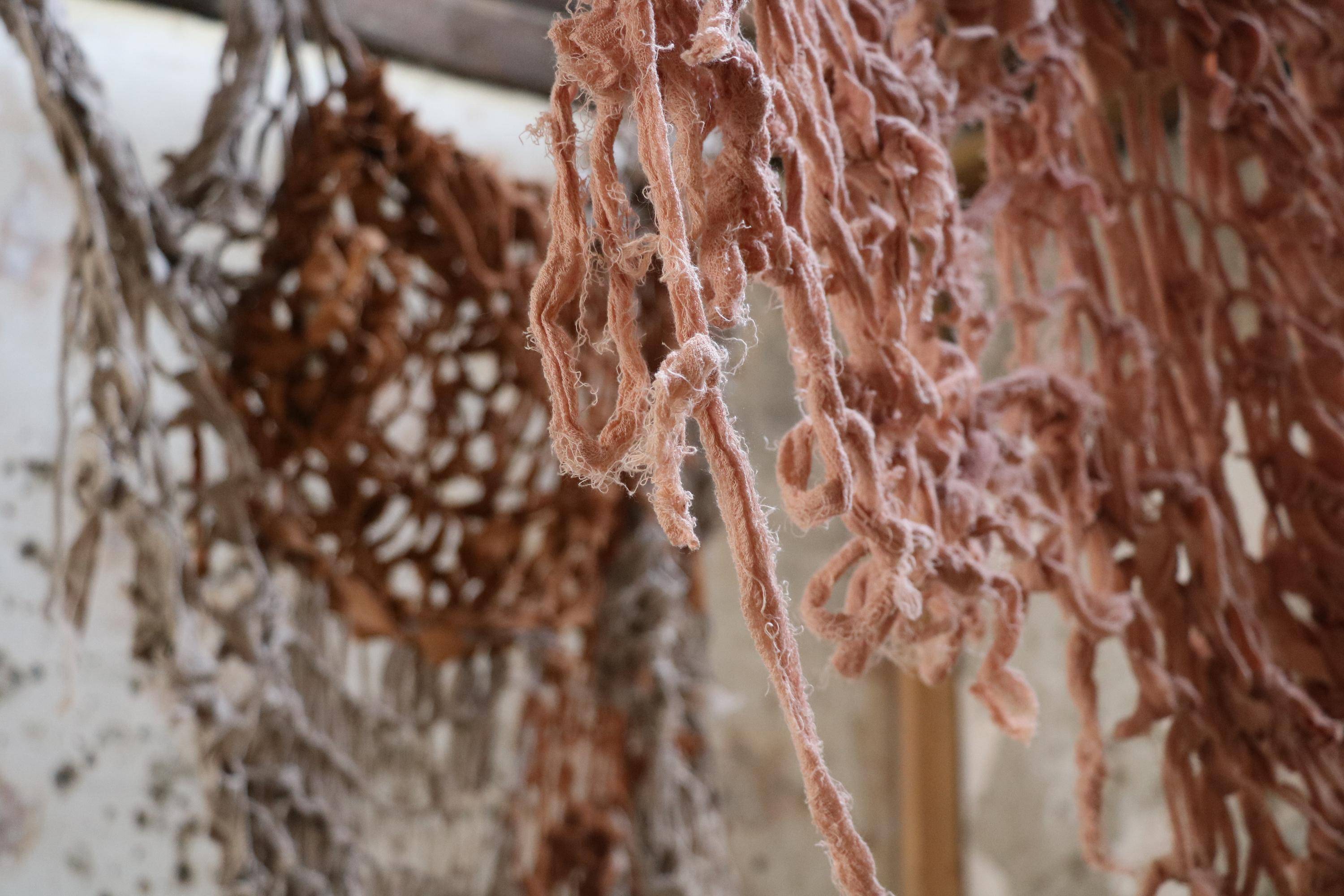 , Cotton fabric ripped and armknitted, 2025.