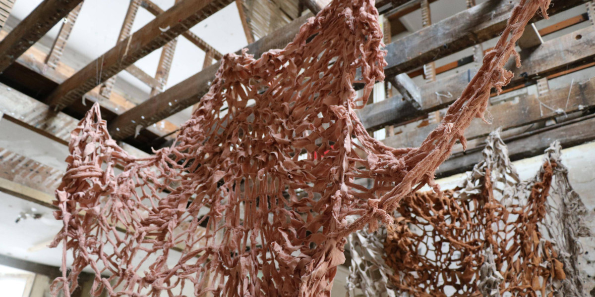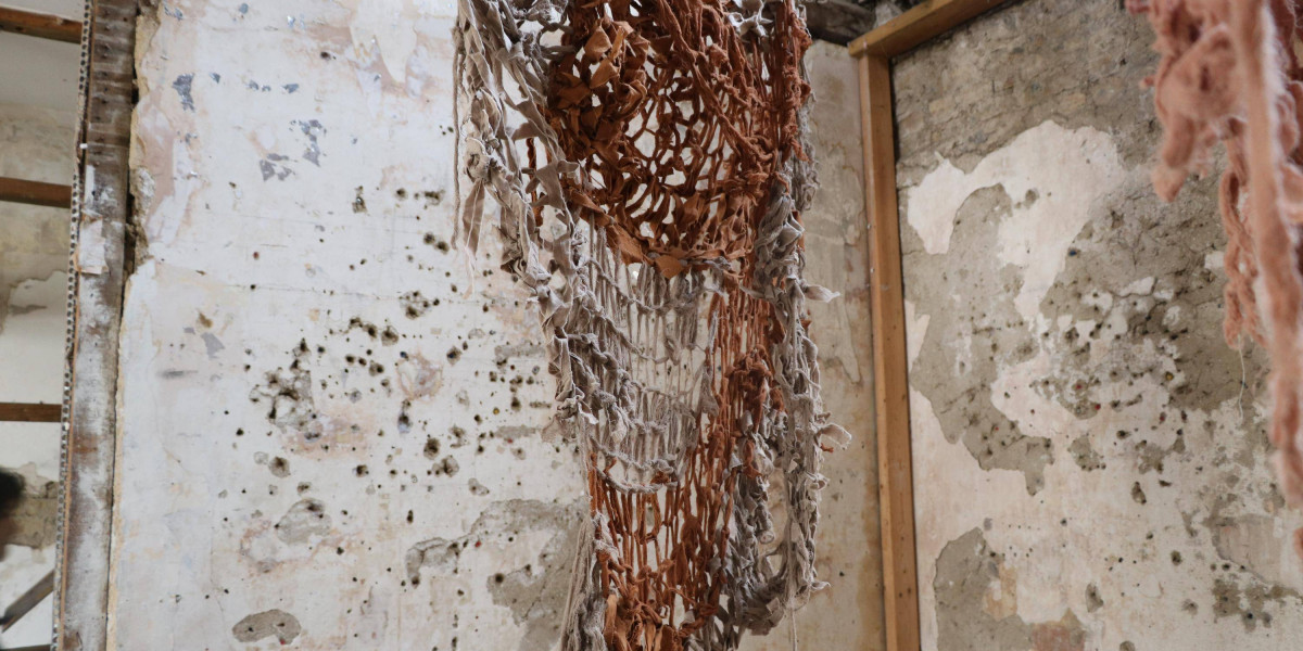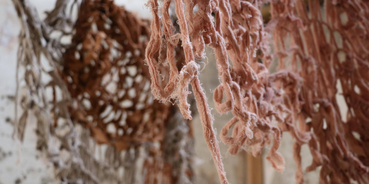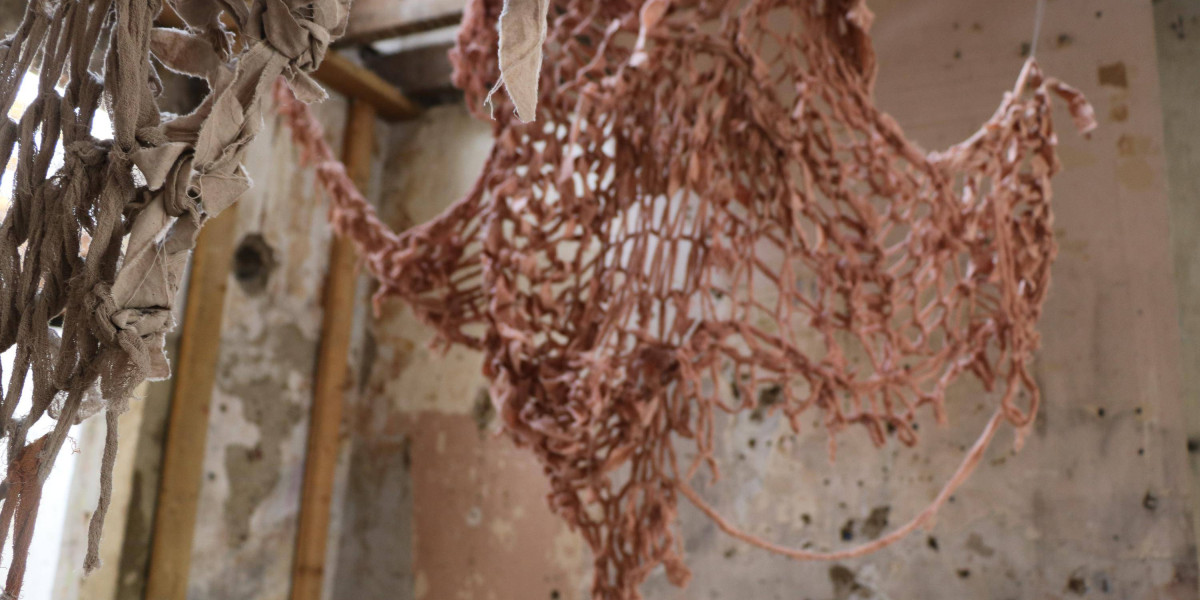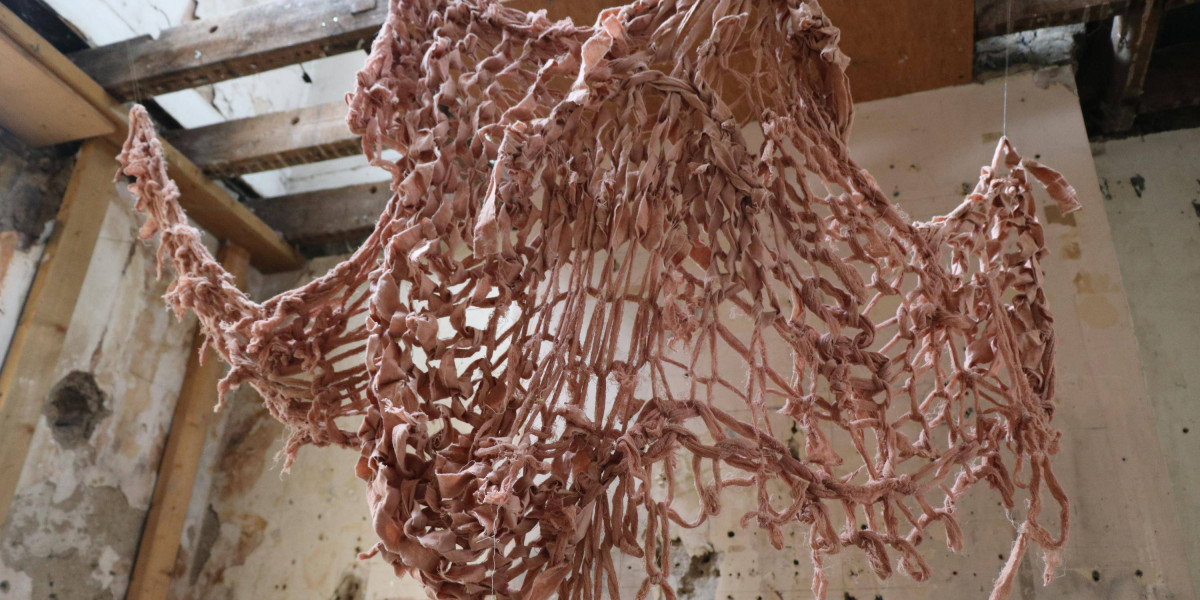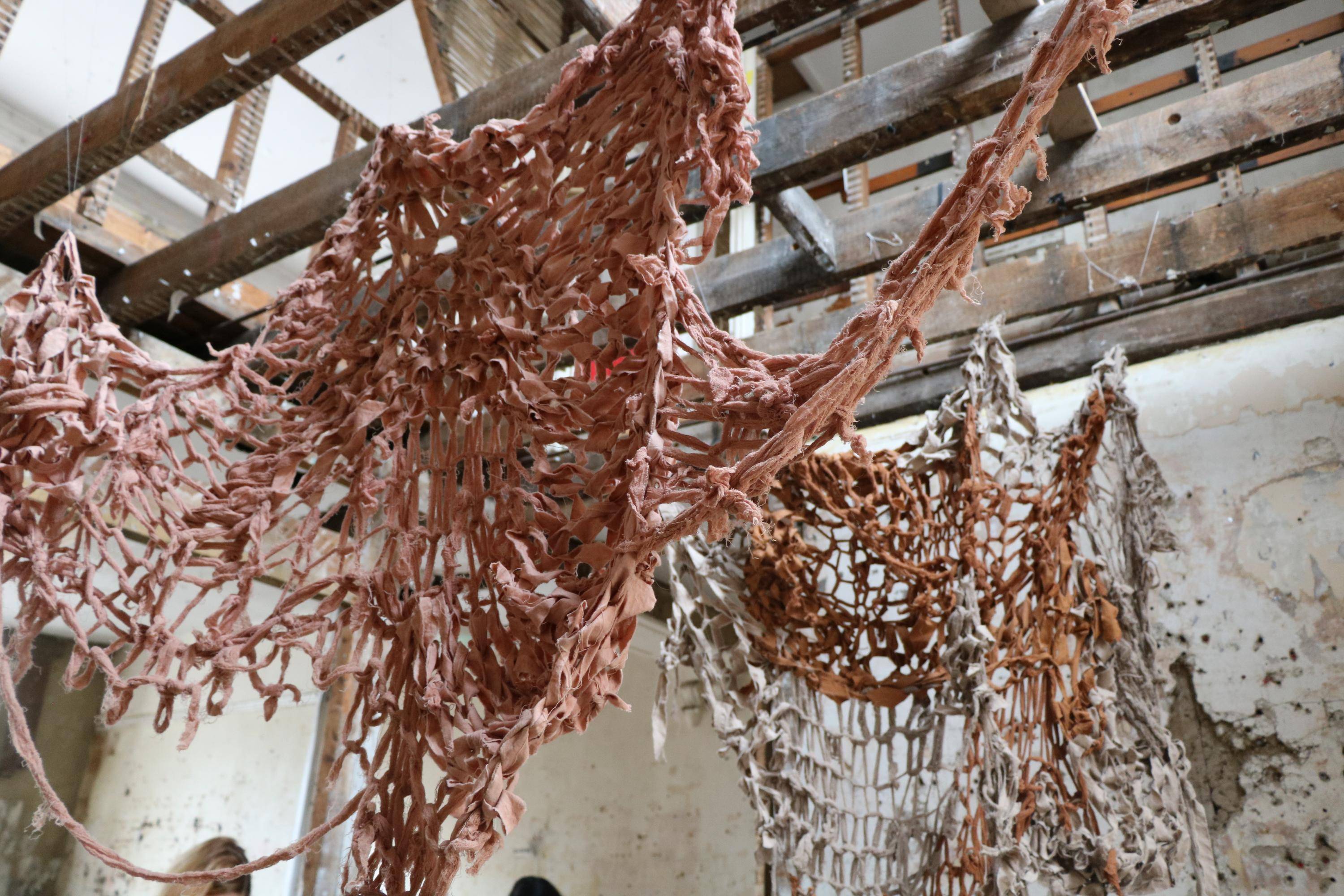 , Cotton fabric ripped and armknitted, 2025.