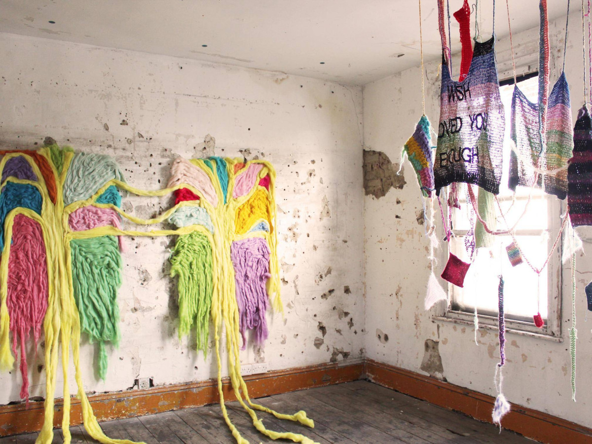 Trees, I Wish I Loved You Enough, and My Nest displayed during Fluidity of Materials, held in Safehouse 2, Peckham, London,…