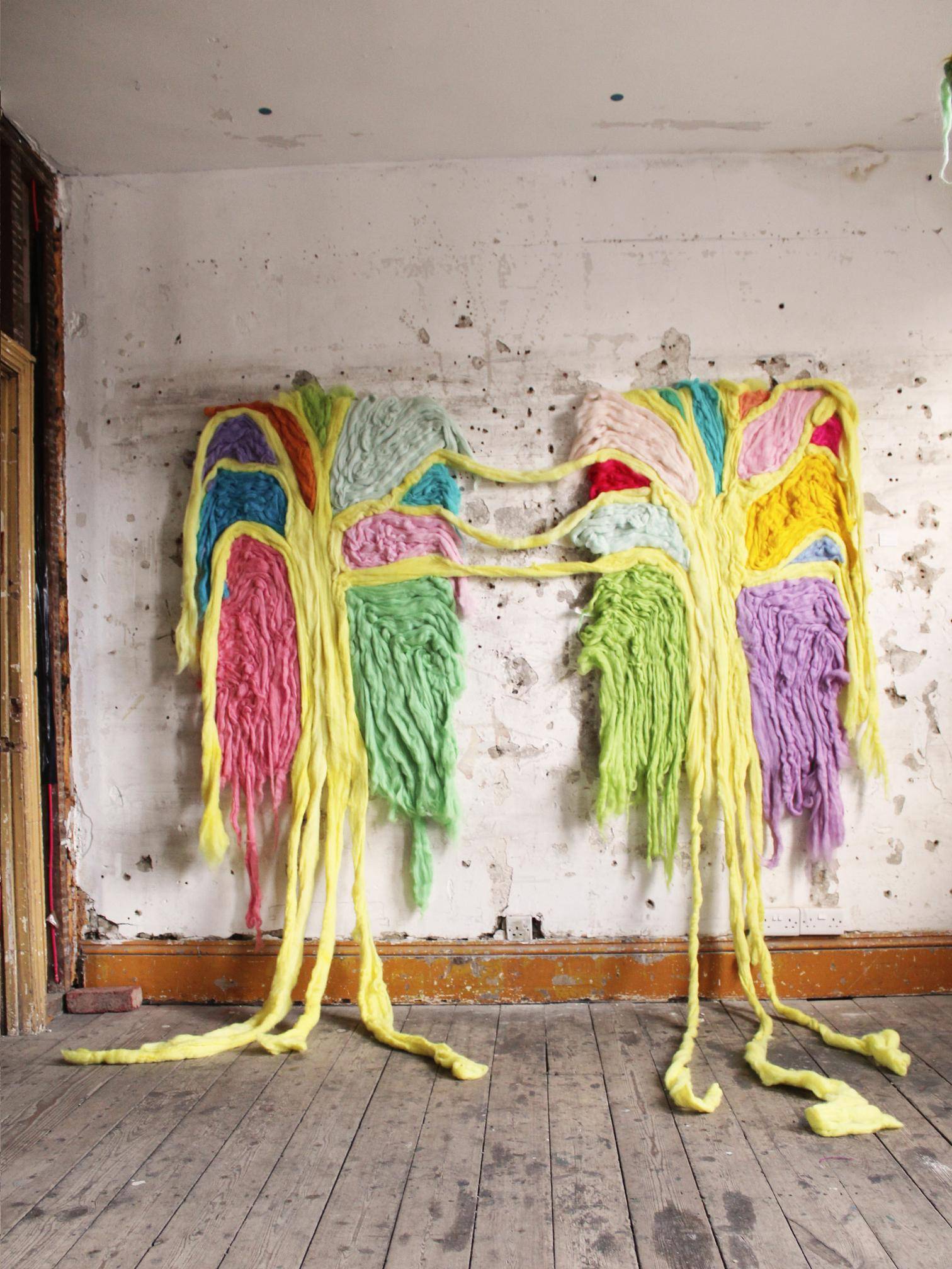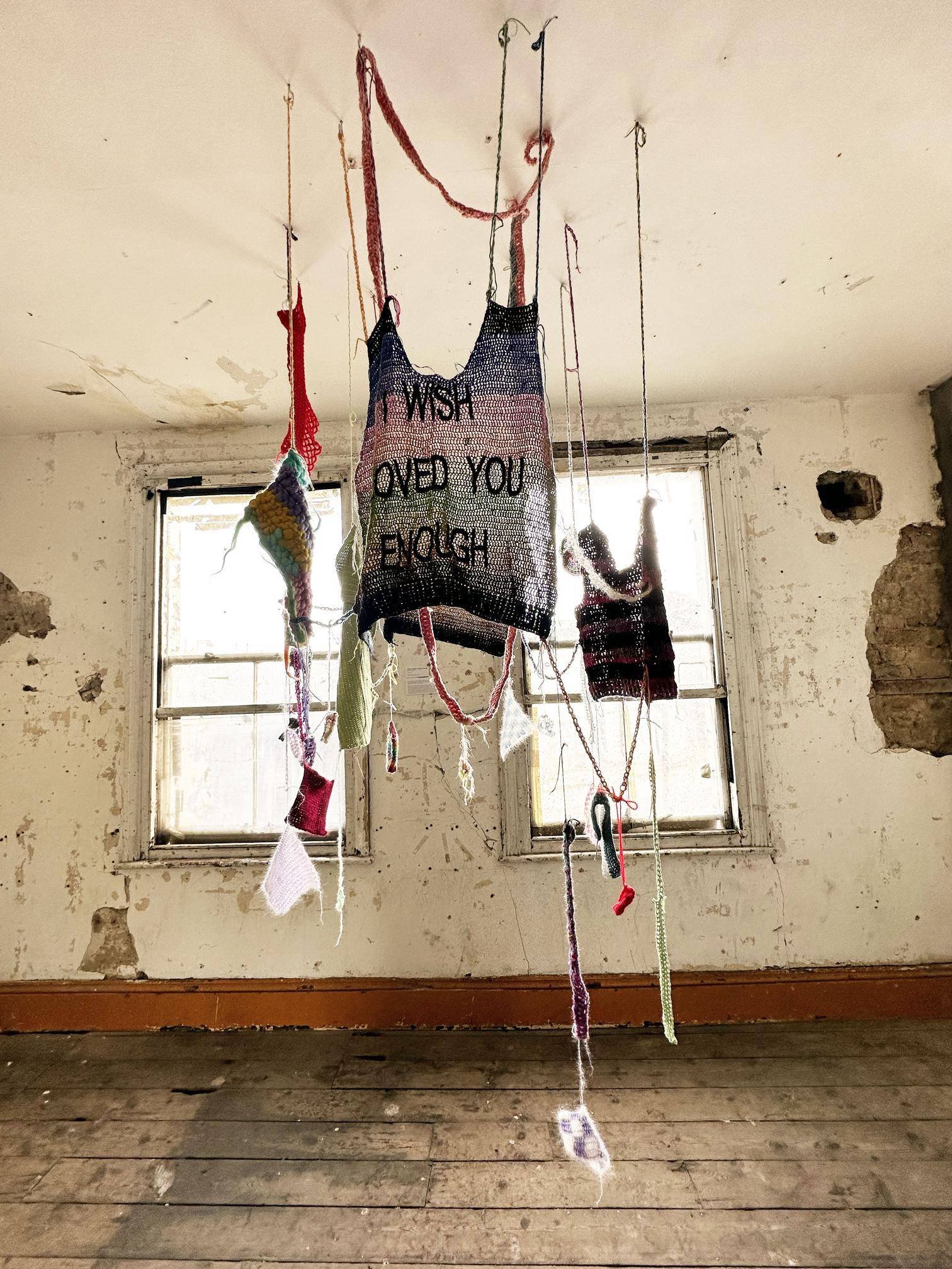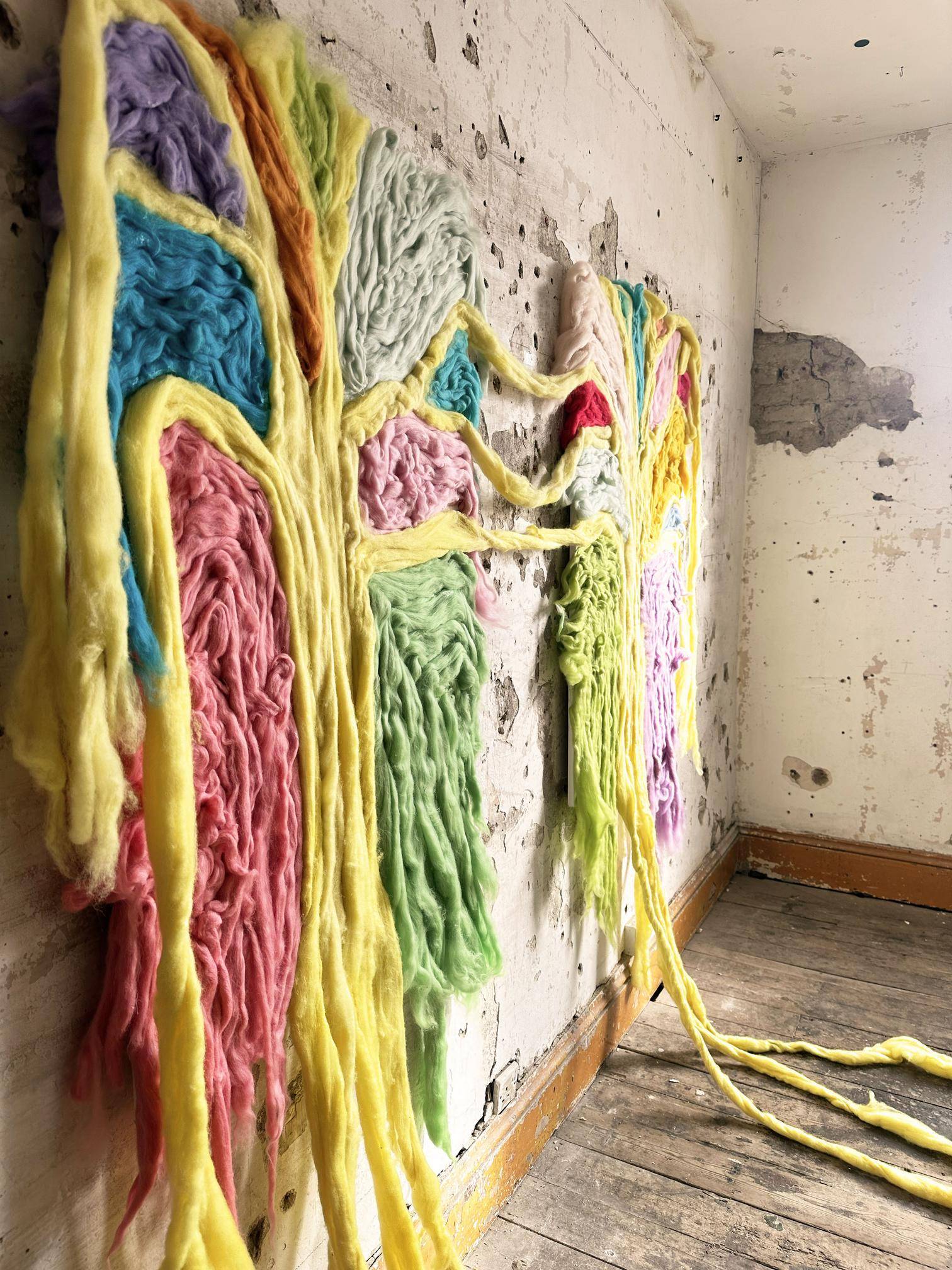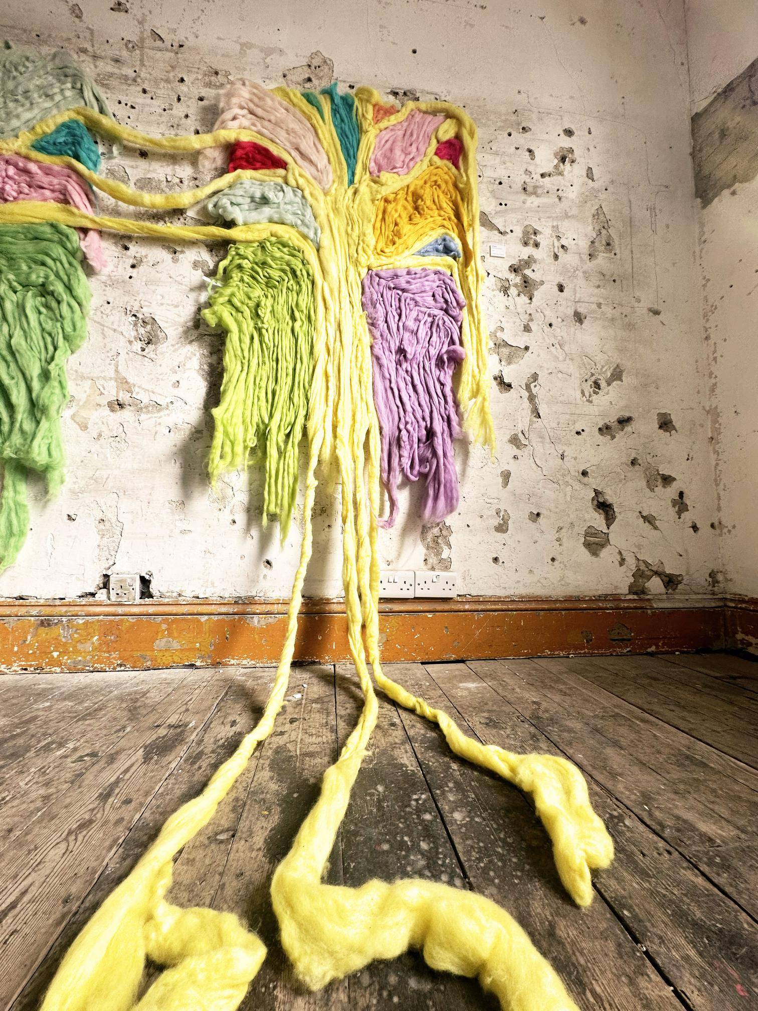 Trees, I Wish I Loved You Enough, and My Nest displayed during Fluidity of Materials, held in Safehouse 2, Peckham, London, 2023.